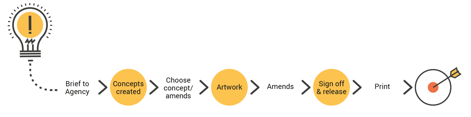 Like any campaign, you’ll start by telling a Senior Account Manager what you need. Then they’ll brief your project into the creative team.